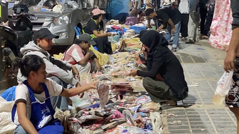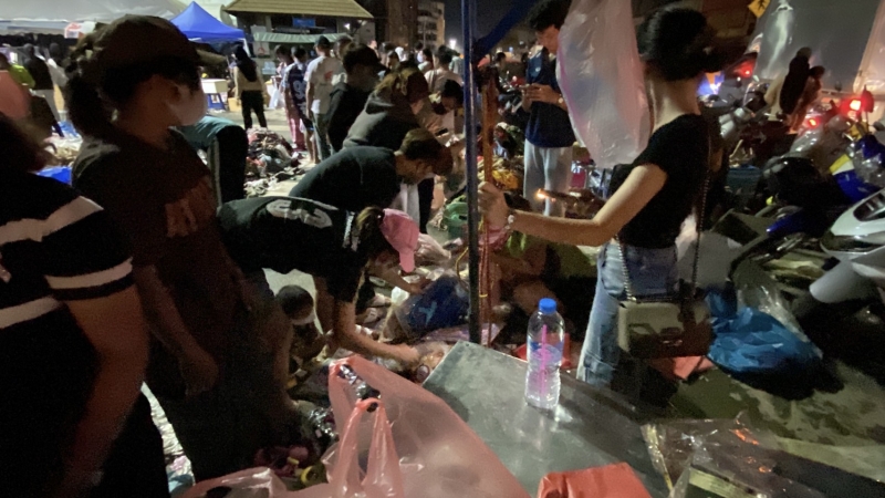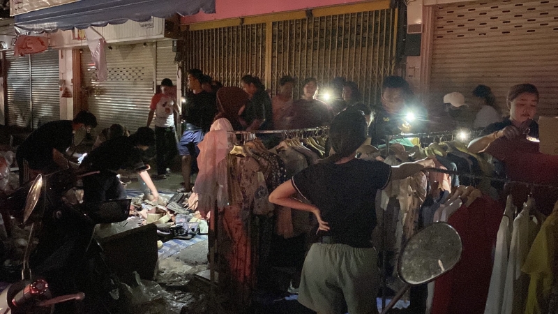 โดยทาง นางสาวลักษิกา รัตน์บุญทอง อายุ 36 ปี ได้เล่าว่า ตนเองได้มาจองที่ขายเสื้อผ้าในราคาต่ำกว่าทุนตั้งแต่ช่วงเวลา 06.00 น. ตนเองได้เปิดร้านขายเสื้อผ้าในราคาส่งอยู่ด้านหลังของธนาคารกรุงเทพ หลังโดนน้ำท่วมตนเองจึงได้นำเสื้อผ้ามาขายในราคาต่ำกว่าทุน ปกติจะขายอยู่ในราคา 120 บาท ขึ้นไป