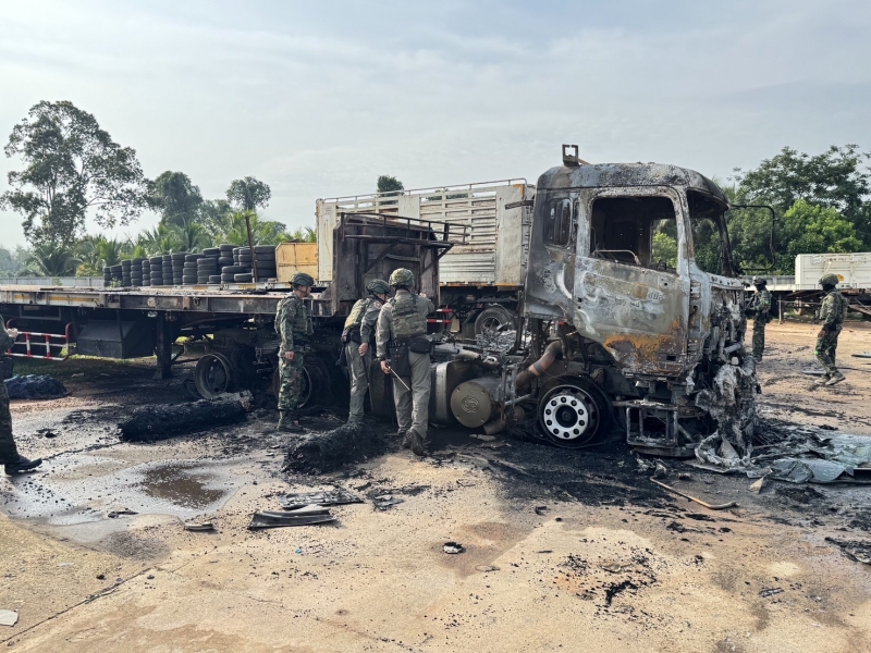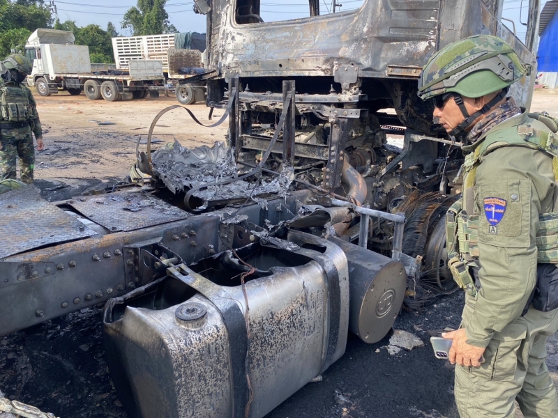 วันนี้ 21 มกราคม 2569 พันเอก เอกวริทธิ์ ชอบชูผล รองโฆษก กองอำนวยการรักษาความมั่นคงภายในภาค 4 ส่วนหน้า เปิดเผยกรณีเกิดเหตุได้ยินเสียงคล้ายระเบิดและเกิดเพลิงไหม้หัวรถเทรลเลอร์ ภายในโกดังไม่มีเลขที่ ตั้งอยู่ริมแม่น้ำโก-ลก พื้นที่บ้านกวาลอซีรา หมู่ที่ 7 ตำบลปาเสมัส อำเภอสุไหงโก-ลก จังหวัดนราธิวาส เมื่อช่วงกลางดึกของวันที่ 21 มกราคม 2569 ซึ่งส่งผลให้โกดังและรถบรรทุกได้รับความเสียหาย และก่อให้เกิดความกังวลในหมู่ประชาชน