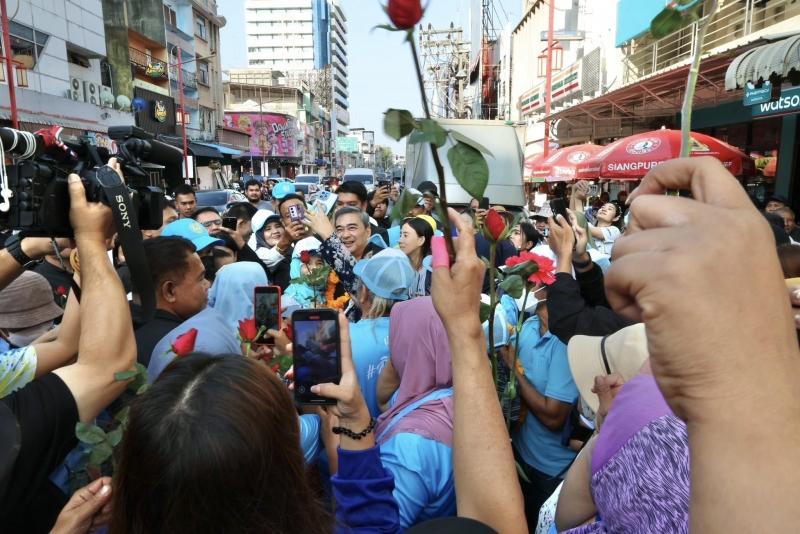 วันนี้ 2 ก.พ. 69 นายอภิสิทธิ์ เวชชาชีวะ หัวหน้าพรรคประชาธิปัตย์เดินหน้าขยับเกมการเมืองในพื้นที่ภาคใต้ ลงพื้นที่อำเภอหาดใหญ่ จังหวัดสงขลา ท่ามกลางการต้อนรับจากประชาชนที่ตลาดกิมหยงอย่างอบอุ่น ทั้งดอกกุหลาบ พวงมาลัยดาวเรือง และเสียงเพลง “ปักษ์ใต้บ้านเรา” ที่ดังก้องทั่วตลาด สะท้อนฐานมวลชนและความผูกพันทางการเมืองในพื้นที่ดั้งเดิมของพรรค