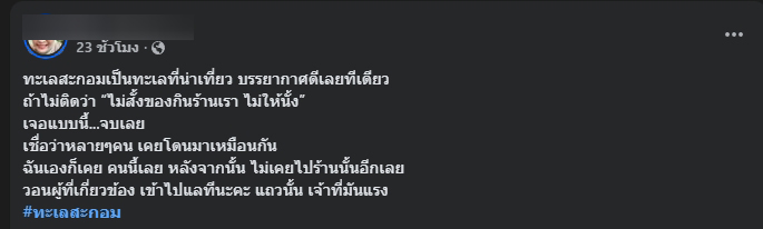 โดยในโพสต์ดังกล่าว ระบุว่า มีร้านค้าในพื้นที่แจ้งกับนักท่องเที่ยวว่า “หากไม่สั่งอาหารจากร้าน จะไม่อนุญาตให้นั่ง” ส่งผลให้รู้สึกไม่สบายใจ และทำให้ประสบการณ์ท่องเที่ยวสะดุดลงทันที พร้อมระบุว่า เชื่อว่ามีนักท่องเที่ยวอีกหลายคนที่เคยเผชิญเหตุการณ์ในลักษณะเดียวกัน