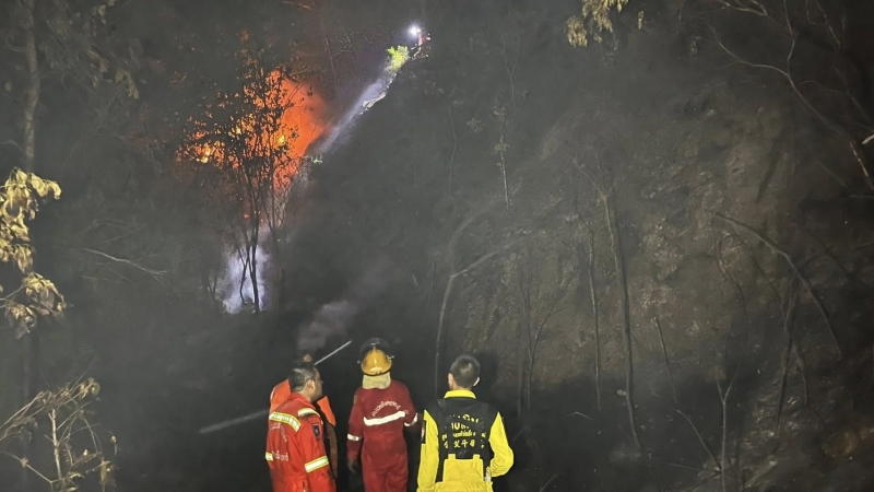 ตรวจสอบที่หมายเป็นเพลิงไหม้ป่าบริเวณใกล้กับสำนักสงฆ์บ้านในไร่ ซึ่งเกิดจากการเผาขยะ ทำให้ไฟเกิดการลุกลามขึ้นเป็นวงกว้าง
