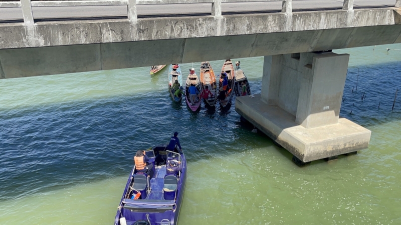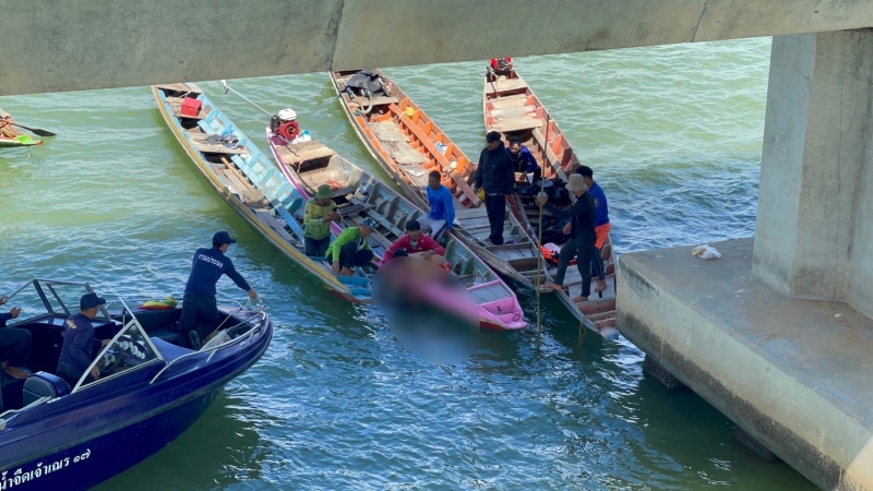 ต่อมาในช่วงเวลาประมาณ 11.00 น. เจ้าหน้าที่พร้อมชาวบ้านได้งมค้นหาอีกครั้ง และพบร่างนายธีรภัทรจมอยู่ใต้น้ำบริเวณตอม่อ ห่างจากจุดเกิดเหตุประมาณ 15 เมตร ก่อนนำร่างขึ้นเรือหางยาวและเคลื่อนย้ายกลับเข้าฝั่ง