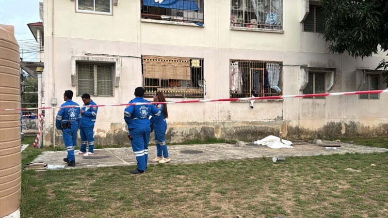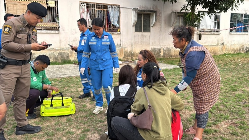 ที่เกิดเหตุบริเวณพื้นปูนด้านหลังอาคารพักอาศัยสูง 4 ชั้น พบผู้เสียชีวิตทราบชื่อคือ นายพิน สารานนท์ อายุ 68 ปี สภาพนอนคว่ำหน้า มีบาดแผลรุนแรงจากการตกจากที่สูง จากการตรวจสอบบริเวณชั้น 4 พบประตูเหล็กเปิดอยู่ คาดว่าเป็นจุดที่ผู้เสียชีวิตพลัดตกลงมา ขณะที่ญาติเดินทางมายังที่เกิดเหตุด้วยความโศกเศร้า โดยมีเจ้าหน้าที่คอยดูแลอย่างใกล้ชิด
