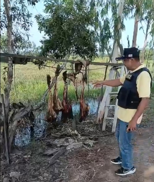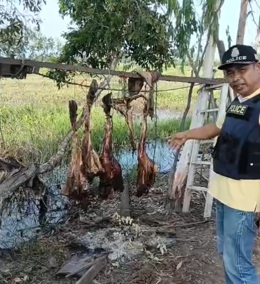 วันที่ 2 มีนาคม 2569เวลา 16.30น. ร.ต.อ. สุนันท์ จันทร์คง รอง สวป.สภ.ระโนด พร้อม สายตรวจตำบลบ้านขาว/ตะเครียะ รับแจ้งจากผู้ช่วยผู้ใหญ่บ้านหมู่ที่6 ตำบลบ้านขาว ว่ามีบุคคลพบซากวัวและวัวจำนวน 3 ตัวถูกผูกทิ้งไว้ในป่าพรุบริเวณสำนักสงฆ์คลองกก หมู่ที่6 ตำบลบ้านขาว สายตรวจตำบลบ้านขาว-ตะเครียะ เดินทางไปตรวจสอบ เมื่อเดินทางไปถึงพบซากซี่โครง หนังและหัววัว ลอยอยู่ในน้ำริมทะเล