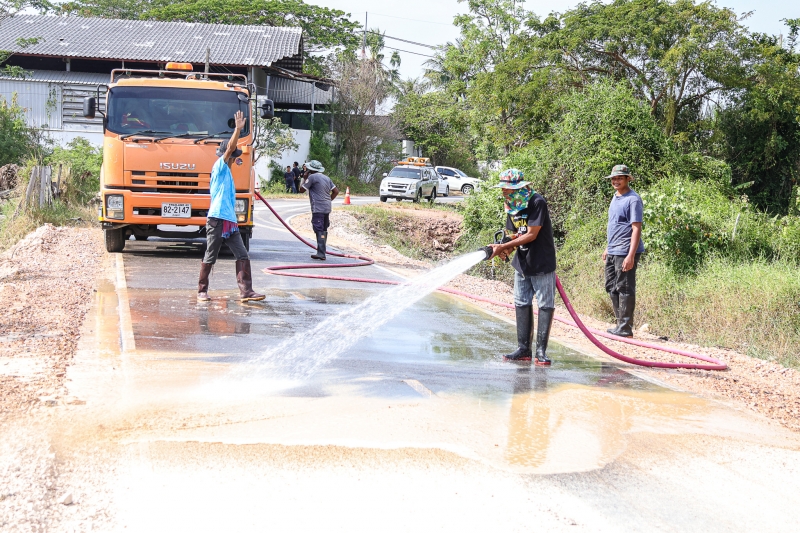 เจ้าหน้าที่เทศบาลเมืองเขารูปช้าง ได้ระดมเจ้าหน้าที่เครื่องจักรกล และรถน้ำ เร่งดำเนินงานจัดเก็บขยะเพื่อคืนความสะอาดให้ถนนทั้งสองข้างทาง จากนั้นได้นำดินลูกรังถมอัดแน่นเพื่อปรับภูมิทัศน์ และนำรถน้ำเข้าฉีดทำความสะอาดบริเวณดังกล่าวให้สะอาดเป็นระเบียบและลดฝุ่นควันจากการสัญจรไปมา