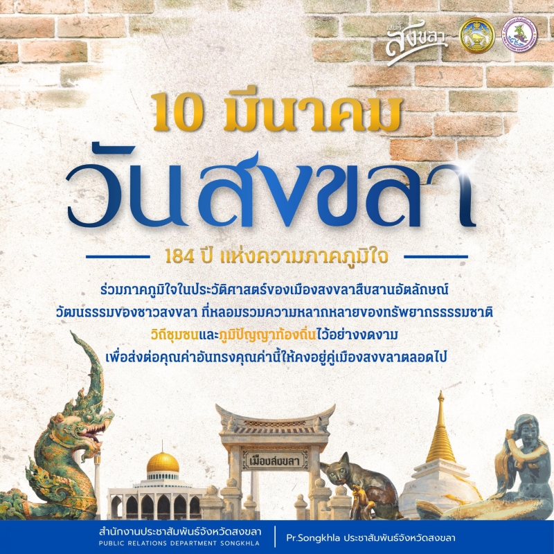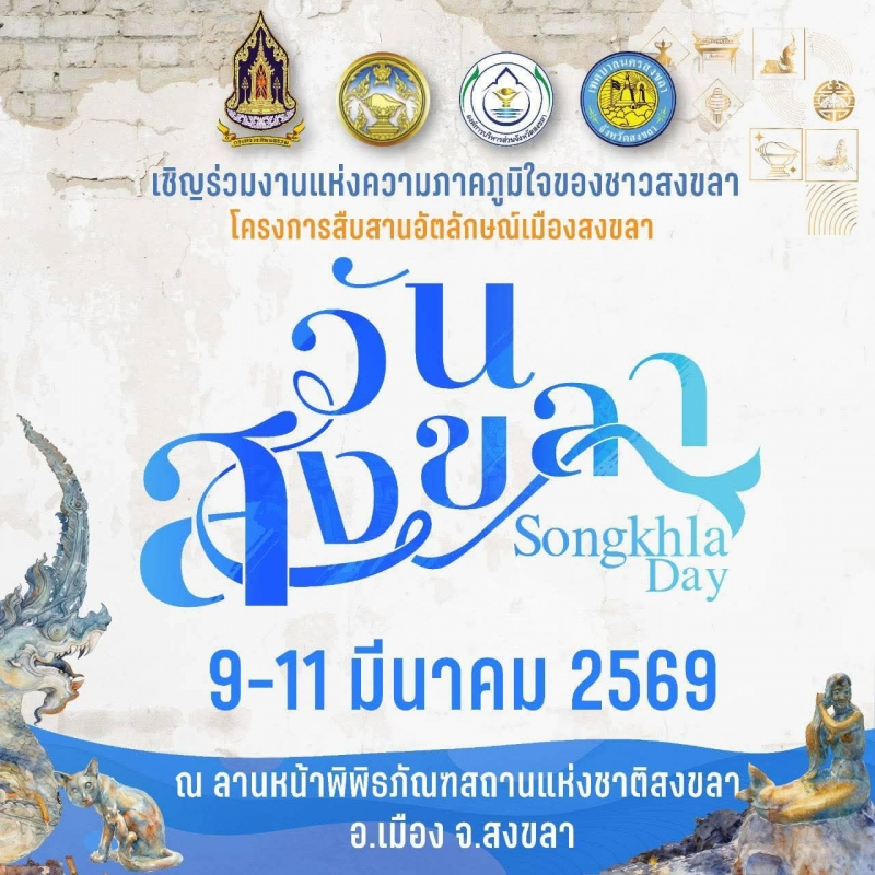 วันที่ 10 มีนาคม 2569 เวลาประมาณ 06.30 โดยสำนักงานวัฒนธรรมจังหวัดสงขลา ร่วมกับหน่วยงานภาครัฐและภาคเอกชน จัดโครงการสืบสานอัตลักษณ์เมืองสงขลา (งานวันสงขลา) ประจำปี 2569 โดยถือเอาวันที่ 10 มีนาคมของทุกปี เป็นวันสงขลา ซึ่งถือเป็น 184 ปี แห่งความภาคภูมิใจเมืองสงขลา