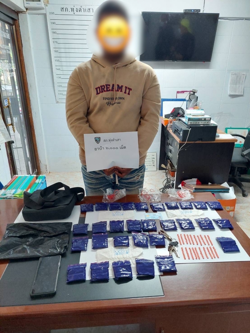 จากการตรวจค้นพบของกลาง ประกอบด้วย ยาบ้า จำนวน 6,000 เม็ด โทรศัพท์มือถือ 1 เครื่อง รถจักรยานยนต์ 1 คัน กระเป๋าผ้าแบบสะพาย 1 ใบ เบื้องต้นเจ้าหน้าที่ได้นำตัวผู้ต้องหาพร้อมของกลาง ส่งพนักงานสอบสวน สภ.ทุ่งตำเสา เพื่อดำเนินคดีในข้อหา