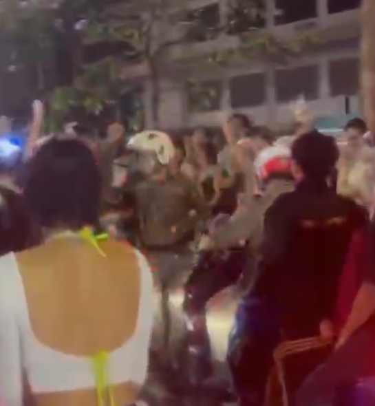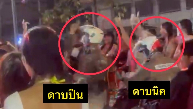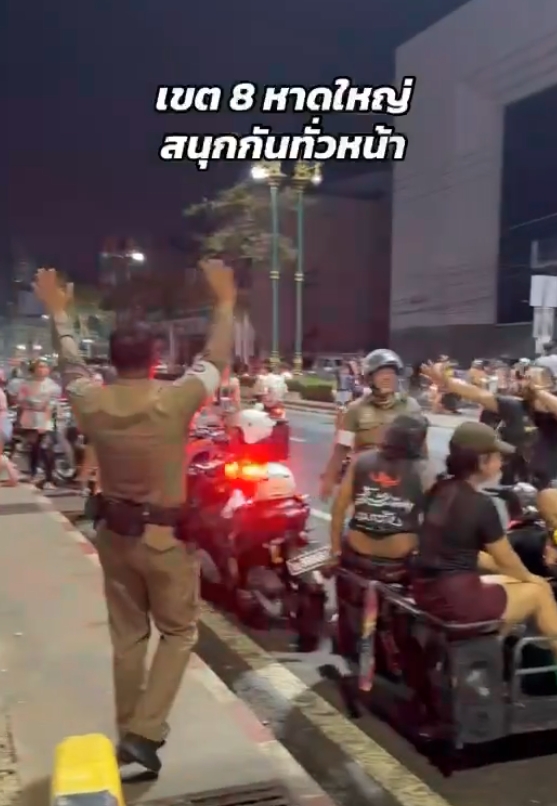 ระหว่างปฏิบัติหน้าที่ เจ้าหน้าที่ได้ยินเสียงเพลงจังหวะสนุกสนานจากกลุ่มนักท่องเที่ยว ก่อนตัดสินใจจอดรถและลงไปร่วมเต้นอย่างเป็นกันเอง โชว์สเต็ปแดนซ์สุดมันส์กลางถนน ท่ามกลางบรรยากาศการเล่นน้ำสงกรานต์ที่เต็มไปด้วยความคึกคัก เสียงหัวเราะ และรอยยิ้ม