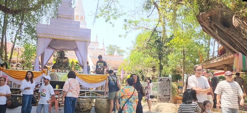 ขณะที่อีกครอบครัว ก็เดินทางจากกรุงเทพมหานคร มาเยี่ยมญาติเนื่องในวันสงกรานต์ที่อำเภอระโนด จังหวัดสงขลา ก่อนพากันมาไหว้ขอพรหลวงปู่ทวดเหยียบน้ำทะเลจืด ก่อนเดินทางกลับกรุงเทพมหานคร ซึ่งน้อง ๆ ก็บอกว่า ขอพรด้านการเรียน ขอให้สอบเรียนต่อชั้น ม.4 ได้โรงเรียนตามที่ตั้งใจไว้ เรียนหนังสือได้คะแนนดี และสุขภาพแข็งแรง