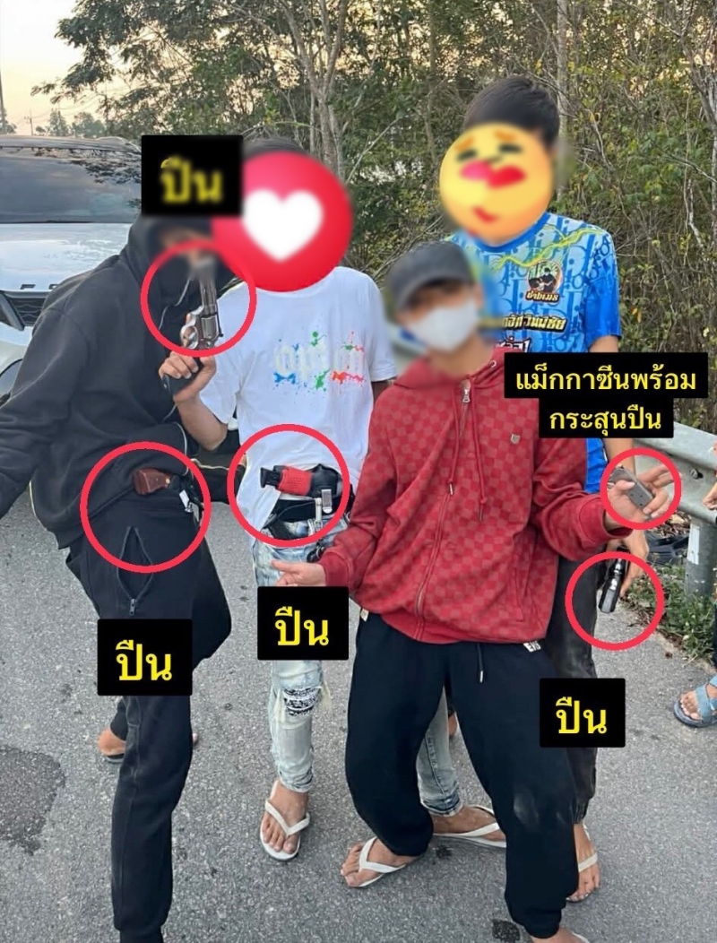 นอกจากนี้ ยังพบว่ากลุ่มวัยรุ่นได้ถ่ายภาพและเซลฟี่อวดอาวุธปืนจำนวนหลายกระบอก พร้อมโพสต์ลงบนโซเชียลมีเดียอีกด้วย