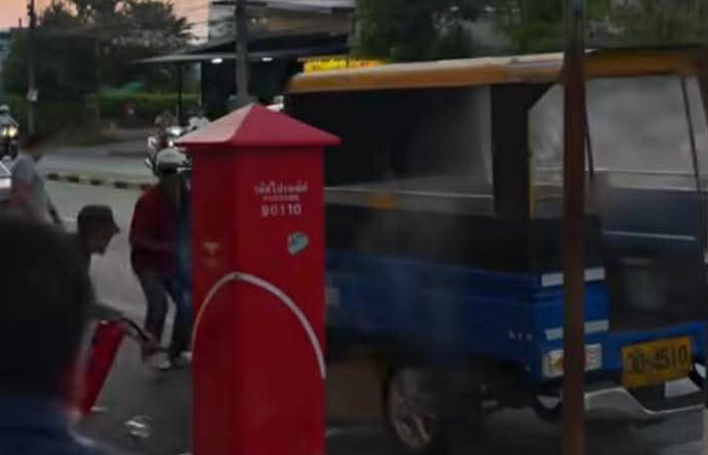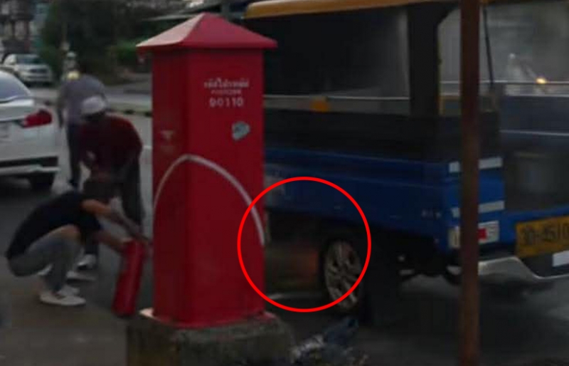 จากการตรวจสอบ พบว่ามีเพลิงไหม้ออกมาจากบริเวณใต้ท้องรถตุ๊กตุ๊ก ทำให้ผู้คนพลเมืองดีที่อยู่บริเวณนั้นรีบเร่งช่วยเหลือ จนสามารถดับเพลิงไหม้ได้อย่างปลอดภัย