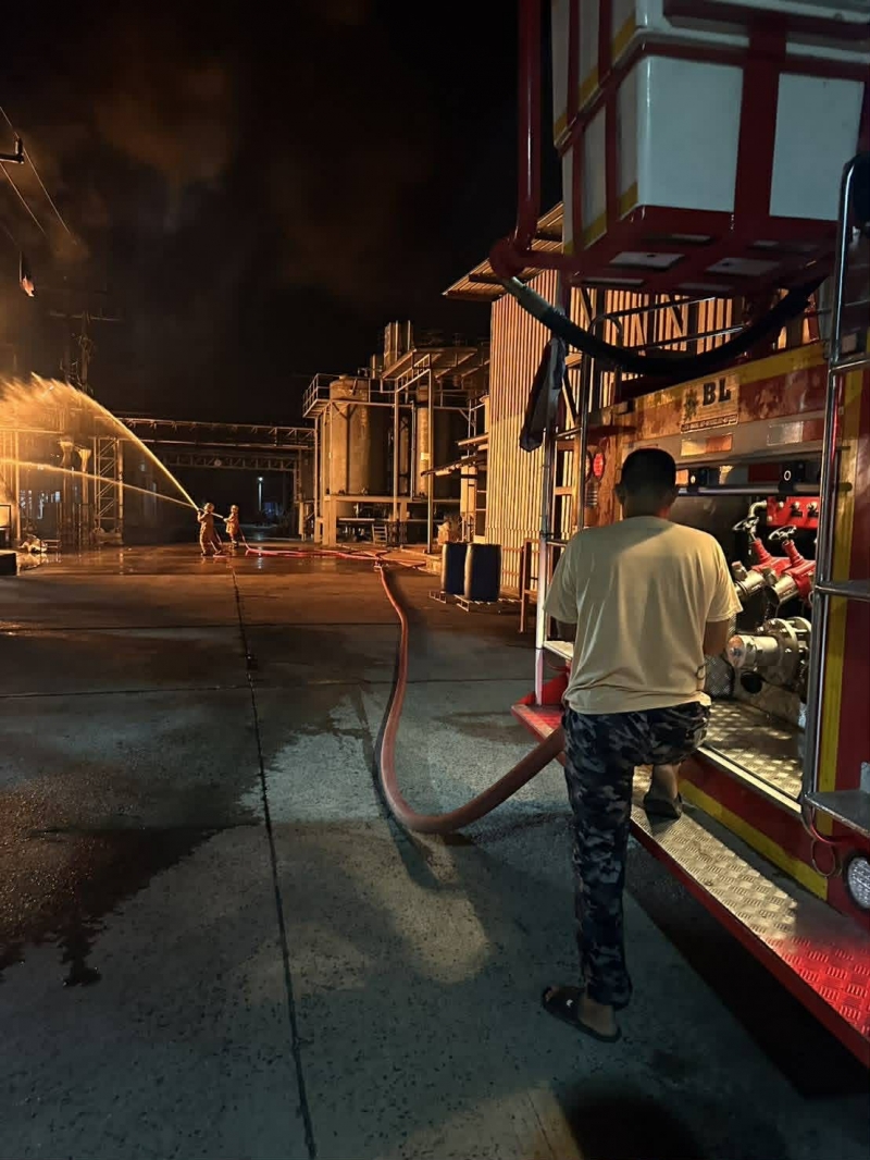 เมื่อถึงที่เกิดเหตุเจ้าหน้าที่ได้พบเพลิงลุกไหม้บริเวณถังเก็บน้ำมันเตาและมีแนวโน้มลุกลามเพิ่ม เจ้าหน้าที่ป้องกันและบรรเทาสาธารณภัยเทศบาลตำบลสำนักขาม เร่งเข้าช่วยพร้อมประสานรถดับเพลิงควบคุมสถานการณ์ได้ทันจนกระทั่ง เวลา 05.20 น. ที่ผ่านมา เจ้าหน้าที่สามารถควบคุมเพลิงไหม้ได้สำเร็จโดยใช้เวลาประมาณ 1 ชั่วโมง 10 นาที