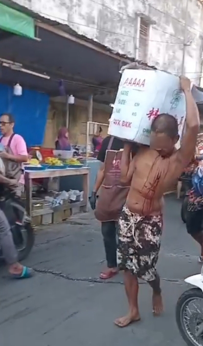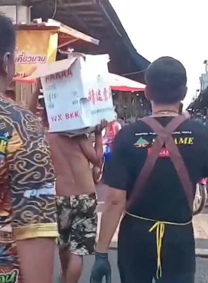 คลิปเหตุการณ์เจ้าของร้านจำหน่ายน้ำแข็งได้นำตัวคนร้ายพร้อมกับแบกมอเตอร์เครื่องบดน้ำแข็งที่อยู่ในลังกระดาษแห่ไปตามทางเดินตลาด พร้อมกับมีเลือดอาบไหลออกมาจากศีรษะ จนไปถึงร้านจำหน่ายน้ำแข็งบ้านของคนร้ายอยู่ติดกับร้าน