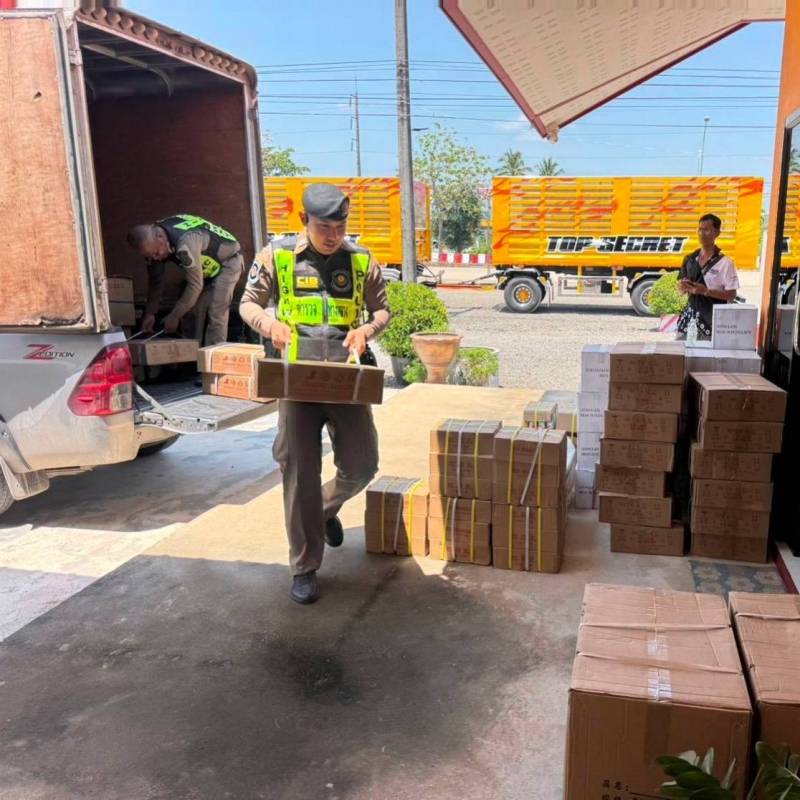 สอบถามคนขับให้การว่า รับสินค้ามาจากพื้นที่อำเภอหาดใหญ่ จังหวัดสงขลา เพื่อไปส่งต่อในพื้นที่จังหวัดตรัง แต่ไม่สามารถแสดงเอกสารการนำเข้า หรือเอกสารเสียภาษีได้
