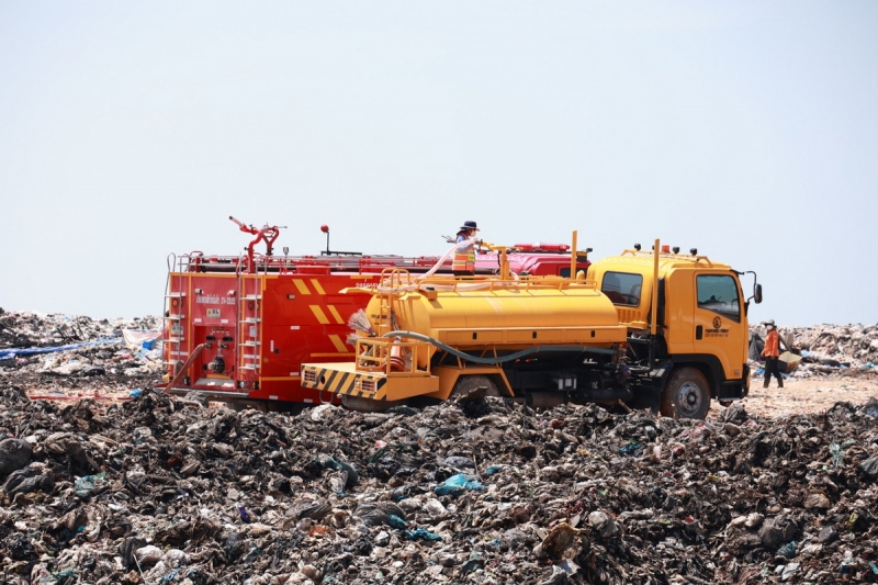 ด้านเทศบาลตำบลเกาะแต้ว ได้ยกระดับการปฏิบัติงาน ระดมรถแบคโฮรวม 9 คัน และรถดับเพลิงกว่า 20 คัน พร้อมใช้วิธี “ขุดบ่ออัดน้ำ” เพื่อให้สามารถลดความร้อนในชั้นขยะลึกได้อย่างมีประสิทธิภาพ โดยมีหน่วยงานภาครัฐ องค์กรปกครองส่วนท้องถิ่น และหน่วยทหาร สนับสนุนกำลังอย่างเต็มที่ ขณะเดียวกันหน่วยงานด้านสาธารณสุขได้ตรวจวัดคุณภาพอากาศ ยังคงพบว่าบางพื้นที่มีค่าฝุ่นละอองอยู่ในระดับที่ส่งผลกระทบต่อสุขภาพประชาชน จึงมีการแจกจ่ายหน้ากากอนามัย ยา และจัดเตรียมที่พักพิงชั่วคราว รวมถึงอำนวยความสะดวกในการเคลื่อนย้ายกลุ่มเปราะบางอย่างต่อเนื่อง