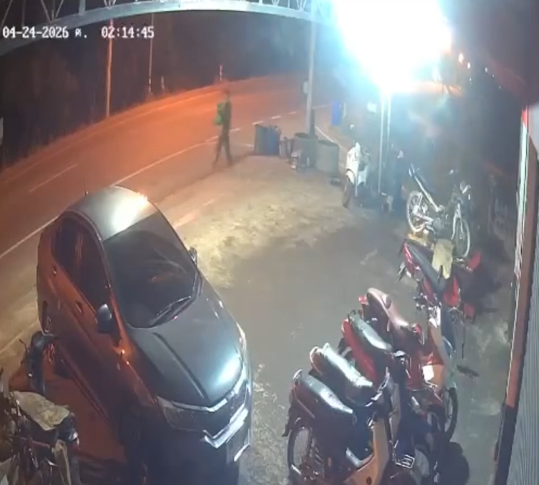 วันนี้ 28 เมษายน 2569 ผู้ใช้เฟซบุ๊กรายหนึ่งได้โพสต์ภาพพร้อมข้อความของโจรที่เข้ามาขโมยของ เวลาประมาณ 02.12 น. คนร้าย 1 คน ตามภาพในกล้องวจรปิด ได้เข้ามาลักทรัพย์ (เหล็กอยู่ในกระสอบสีเขียวตามภาพ) ที่ร้านบัวหลวงมอเตอร์ไซค์ ถนนสายโพรงจระเข้ ม.5 ต.สทิงหม้อ สิงหนคร สงขลา ได้แจ้งความไว้แล้ว ท่านผู้ใดเห็นภาพ และจำได้ ช่วยติดต่อมาทางร้านนะครับ