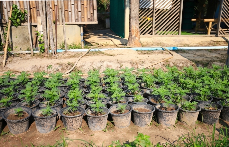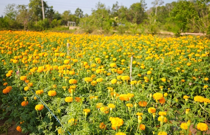 นายปรีชา บุญเนื่อง เจ้าของแปลงและประธานกลุ่มส่งเสริมอาชีพเศรษฐกิจพอเพียงและชุมชน (ไม้ดอก) เปิดเผยว่า เดิมพื้นที่บริเวณนี้เคยเป็นทุ่งนาและเปลี่ยนมาปลูกพืชเศรษฐกิจอย่างยางพาราและปาล์มน้ำมัน แต่เนื่องจากสภาพดินไม่อุดมสมบูรณ์ทำให้ผลผลิตไม่คุ้มค่า จึงตัดสินใจตัดโค่นและปรับเปลี่ยนมาทำเกษตรแบบผสมผสาน โดยเน้นการปลูกไม้ดอกไม้ประดับเพื่อการค้า“ดาวเรือง” ไม่ได้เป็นเพียงไม้ดอกเพื่อความสวยงาม แต่กลายเป็นพืชเศรษฐกิจสำคัญที่สามารถสร้างรายได้ให้ครอบครัวเฉลี่ยสูงถึง 70,000 – 80,000 บาทต่อเดือน ด้วยจุดเด่นปลูกง่าย ใช้เวลาสั้น และมีความต้องการของตลาดต่อเนื่อง