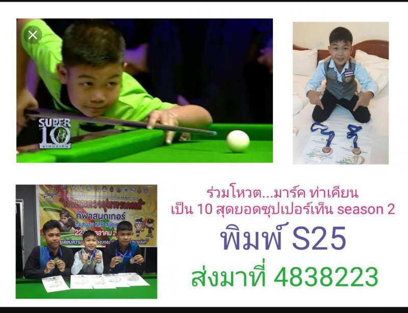 ทั้งนี้ หาดใหญ่โฟกัส จึงขอขอเชิญร่วมโหวตให้ "มาร์ค ท่าเคียน" ด.ช.อภิชาต วิชาเครื่อง (น้องมาร์ค) นักเรียนชั้นประถมศึกษาปีที่ 5 โรงเรียนเทศบาล 4 (วัดคลองเรียน) สังกัดเทศบาลนครหาดใหญ่ จังหวัดสงขลา เป็น 10 สุดยอดซุปเปอร์เท็น (เด็กเทพแห่งวงการสนุ๊กเกอร์)