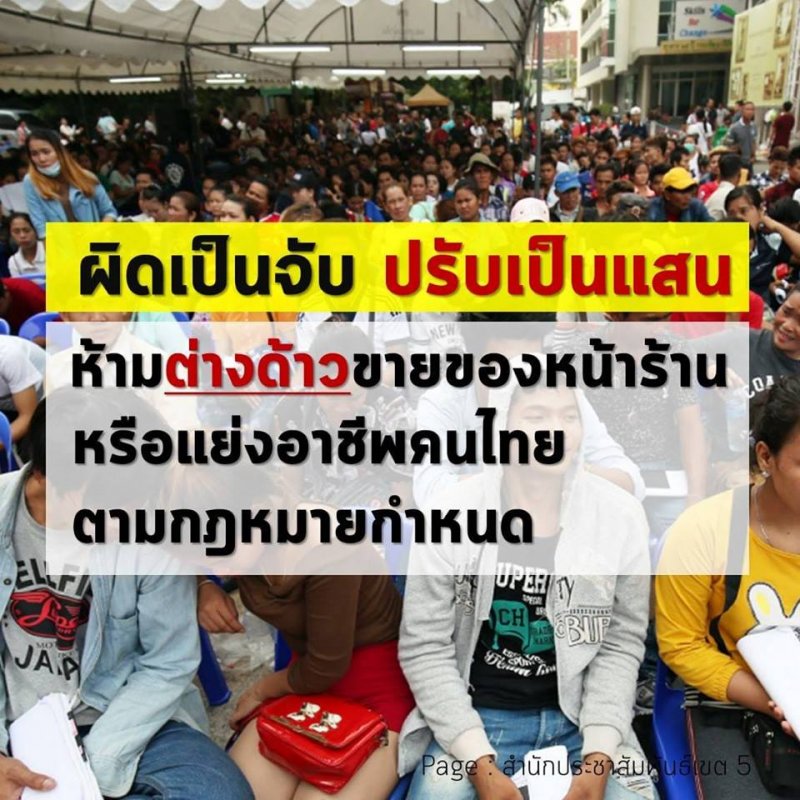 ย้ำทั่วประเทศ! ห้ามแรงงานต่างด้าวขายของหน้าร้าน หรือแย่งอาชีพคนไทยตามที่กฎหมายระบุ ฝ่าฝืนมีโทษปรับทั้งนายจ้างและแรงงานต่างด้าว สูงถึง 100,000 บาท