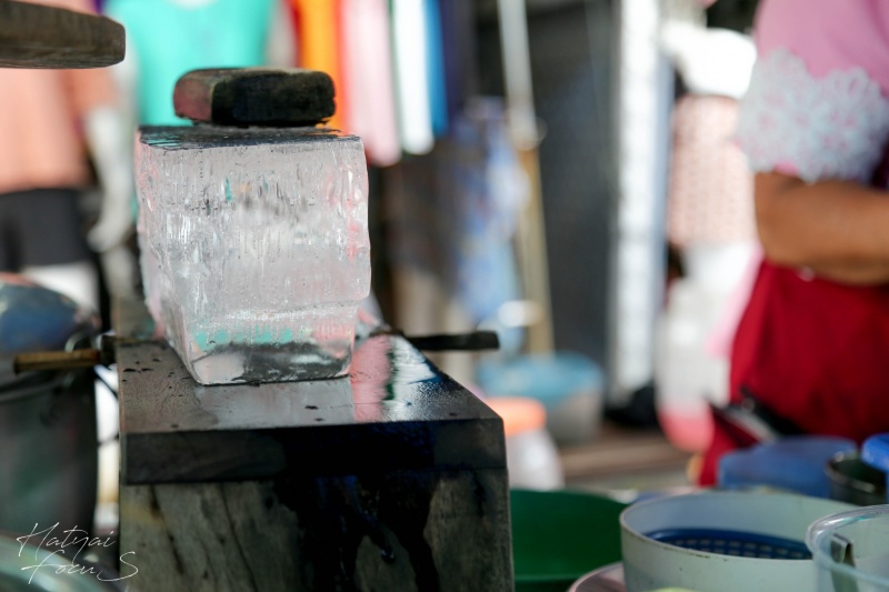 เมื่อก่อนขาย แก้วละ 50 สตางค์ แต่ในปัจจุบันต้องขาย แก้วละ 15 บาท เพราะค่าใช้จ่ายในวัตถุดิบเพิ่มสูงขึ้น แต่ก็ยังมีลูกค้าเข้ามาอย่างมากมายเหมือนกับสมัยอดีต ยิ่งในเดือนเมษาหน้าร้อนจะขายดีเป็นพิเศษเรื่องราวแห่งตำนาน "น้ำแข็งขูด" เป็นอีกหน้าหนึ่งที่ยังไม่ค่อยมีใครรู้ เพราะภูมิปัญญาการสั่งสมประสบการณ์และการถ่ายทอดจากรุ่นสู่รุ่น จึงเป็นมรดกทางวัฒนธรรมทางด้านอาหารการกินที่ยังไม่เลือนหายไปจากความทรงจำตั้งแต่อดีตจนถึงปัจจุบัน จนเป็นเอกลักษณ์อย่างหนึ่งของอำเภอควนเนียง