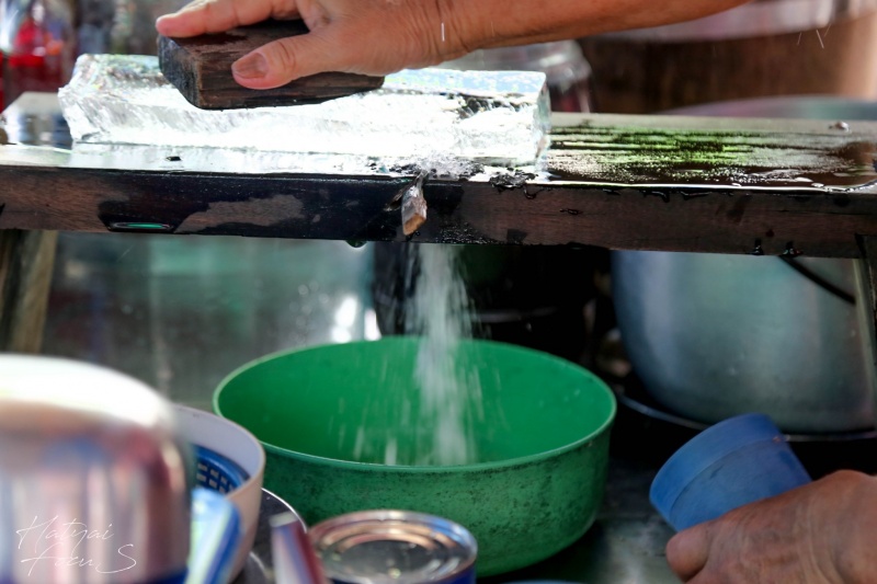 "น้ำแข็งขูด" เป็นอีกหน้าหนึ่งที่ยังไม่ค่อยมีใครรู้ เพราะภูมิปัญญาการสั่งสมประสบการณ์และการถ่ายทอดจากรุ่นสู่รุ่น จึงเป็นมรดกทางวัฒนธรรมทางด้านอาหารการกินที่ยังไม่เลือนหายไปจากความทรงจำ "น้ำแข็งขูด" นี้ได้เริ่มต้นขึ้นที่ อำเภอควนเนียง จังหวัดสงขลา มาตั้งแต่ประมาณ ปี.พ.ศ. 2500 โดยชาวจีนโพ้นทะเล และได้สืบทอดกันมาเป็นรุ่นๆ ซึ่ง แป๊ะท้าย พ่อค้าน้ำแข็งขูดยุคแรกๆ อายุ 85 ปี ซึ่งเริ่มขายมาตั้งแต่ปี พ.ศ. 2506 อยู่บ้านเลขที่ 579/5 ม.2 ตำบลรัตภูมิ อำเภอควนเนียง แต่เดิมตนเป็นคนจีนแผ่นดินใหญ่ อาศัยอยู่ที่ ซัวเถา และได้เดินทางมาเมืองไทยโดยทางเรือ ช่วงแรกๆ ก็มาอยู่ที่หาดใหญ่ทำงานสารพัด และได้คิดทำน้ำแข็งทุบ แล้วใส่น้ำหวาน