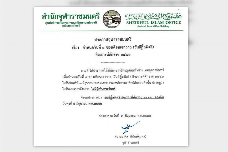 ขอบคุณข้อมูล : สำนักจุฬาราชมนตรี
