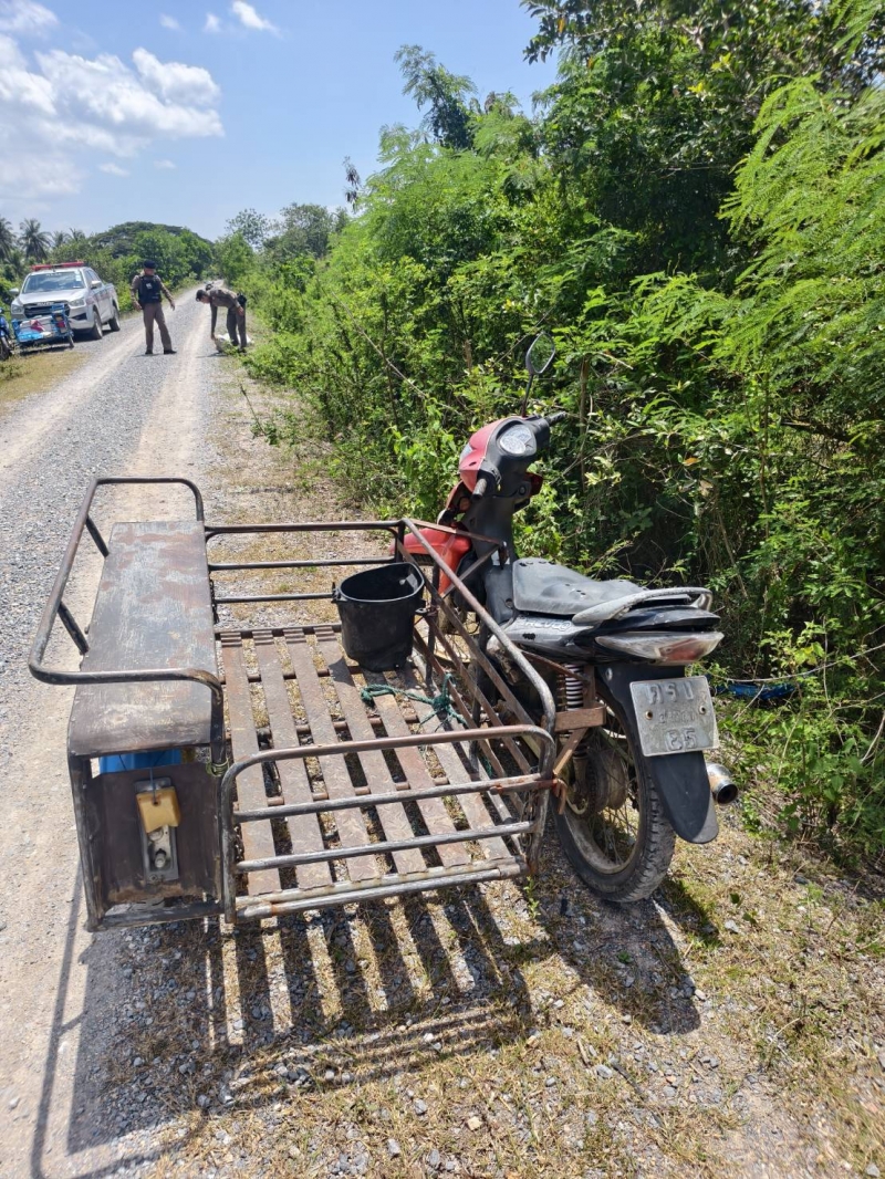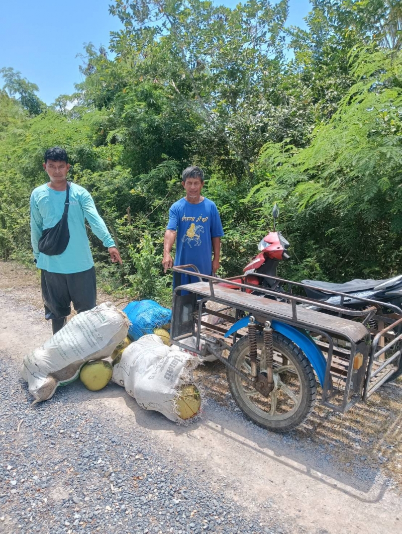 จึงได้เดินทางไปตรวจสอบ เมื่อไปถึงพบผู้เสียหายยืนอยู่ข้างรถจักรยานยนต์แบบพ่วงข้างทะเบียน ครง - 65 สงขลา โดยผู้เสียหายแจ้งว่าเป็นรถจักรยานยนต์ของผู้ต้องหา ซึ่งนำมาใช้ในการขนส่งมะพร้าวที่ขโมยมาจากสวนของตน